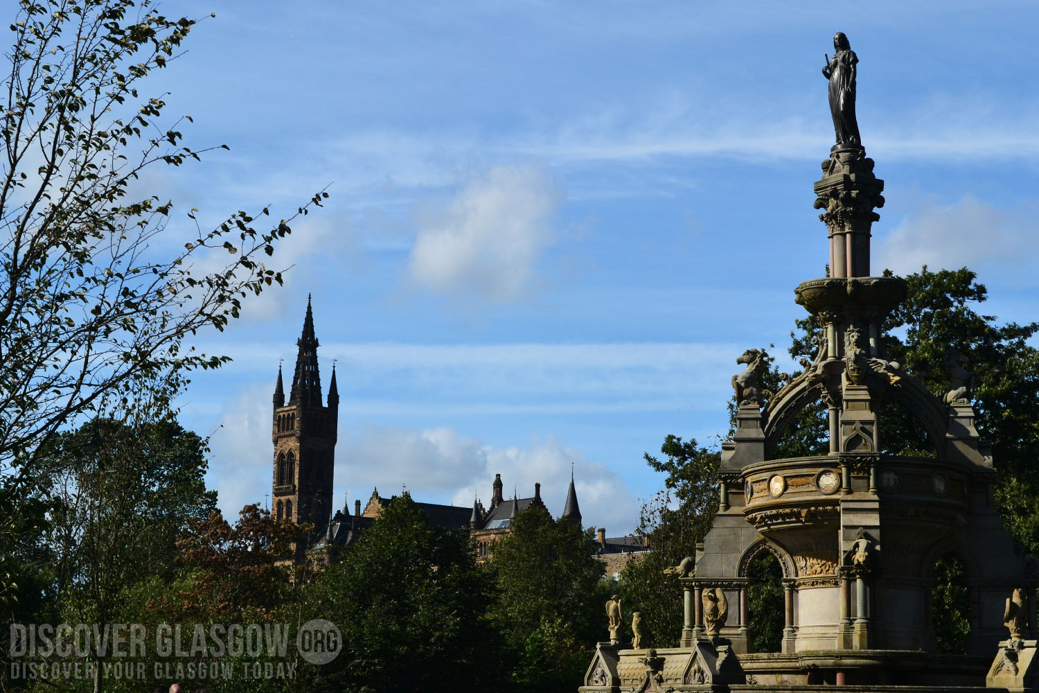 The park has several point of heritage to discover, such as the Stewart Memorial Fountain, built for Lord Provost Robert Stewart. There are also statues of scientist Lord Kelvin and Field Marshall Lord Earl Roberts of Kandahar. This is one of three war memorial statues; the other two are the Highland Light Infantry Memorial, and the Cameronian Rifles Memorial.
