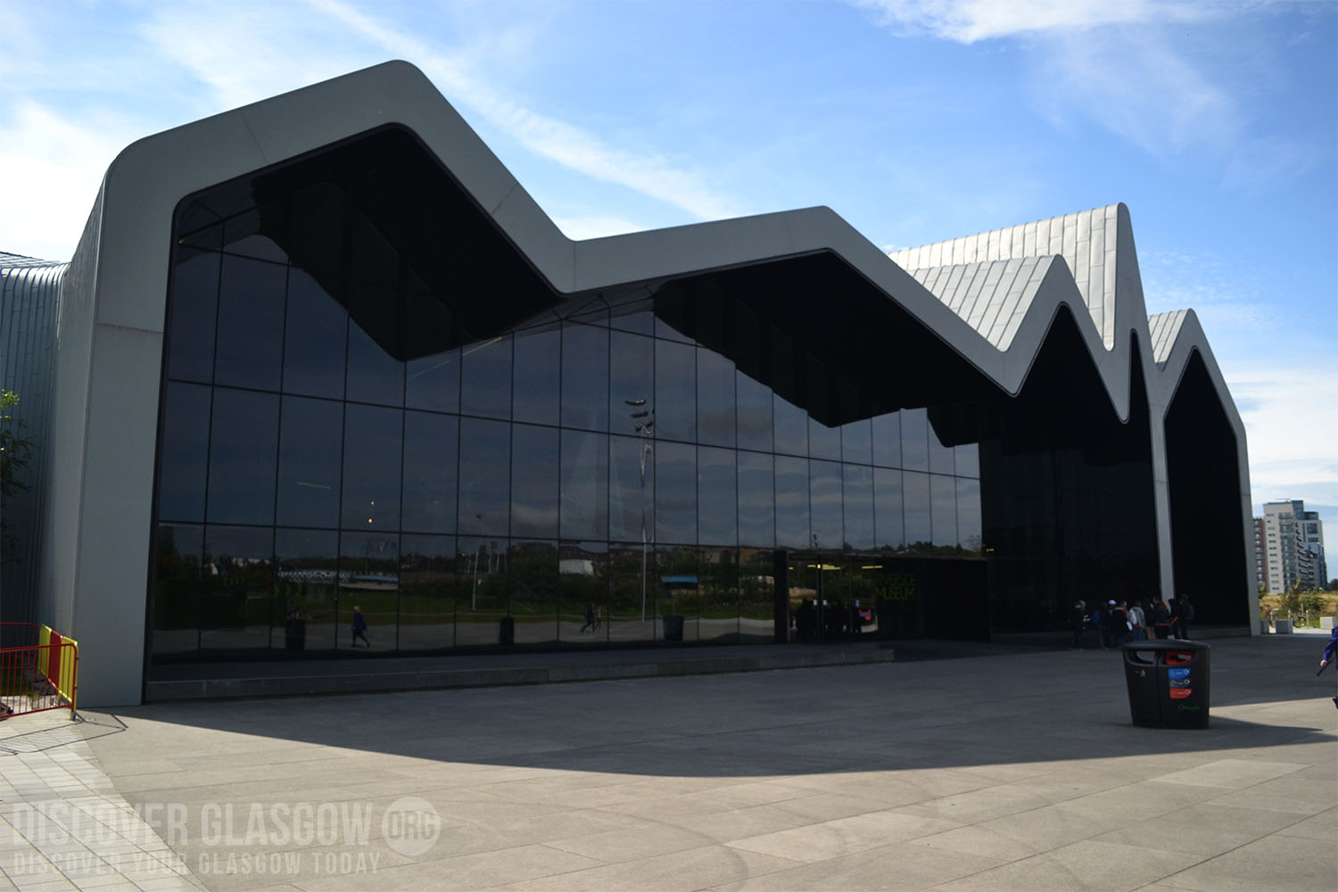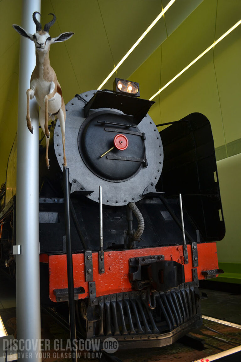The museum’s unique exterior was designed by Iraqi-British architect Dame Zaha Mohammad Hadid, in association with Bath-based engineering consultancy Buro Happold. It was built on the location of the former A. & J. Inglis Shipyard, the most notable sight is the 19th Century Glasgow Tall Ship, the Glenlee, moored next to it on the River Clyde, which visitors can climb aboard. The museum has combined the previous collections from the Transport Museum, including the authentic recreation of a 19th-century street, with new exhibits on Glasgow’s expansive maritime history. It has also acquired artwork to compliment the collection, such as L.S. Lowry’s Cranes and Ships, and a 1945 steam locomotive, originally built in Glasgow, gifted to the museum by South African firm Spoornet.